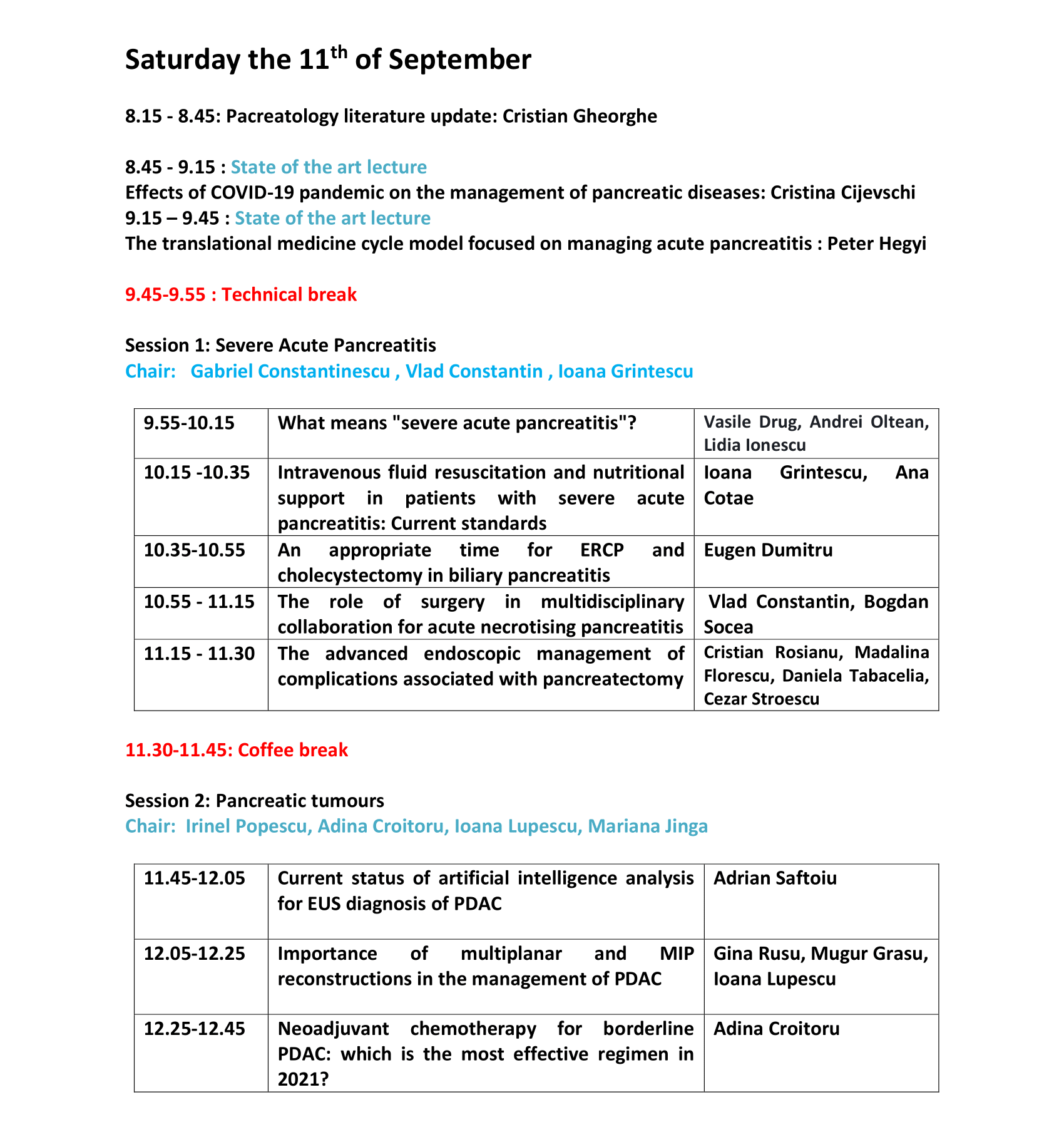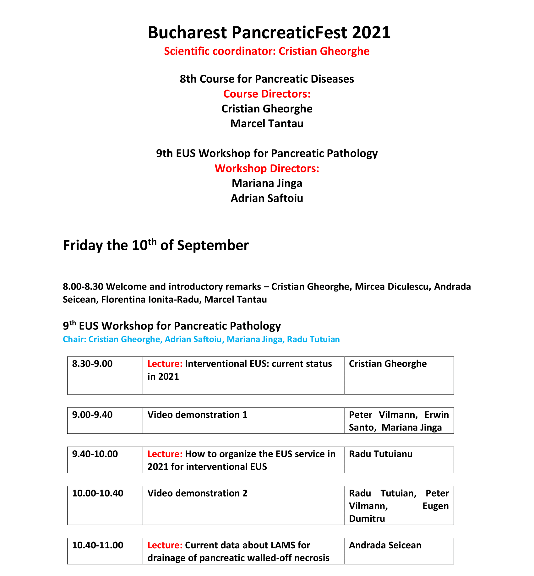 10-11 septembrie 2021 – Bucuresti – Editie Hibrida. A 8-a editie a Pancreatic Disease Course si a 9-a editie a EUS Workshop in Pancreatic Diseases