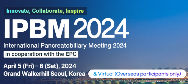 It is our great pleasure to extend a warm welcome to all participants of the International Pancreatobiliary Meeting 2024 (IPBM 2024), which will be held from April 5 to 6, 2024 at Grand Walkerhill Hotel in Seoul, Korea.