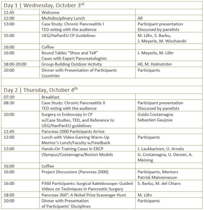 Agenda Pancreas 360 – October 3-6, 2018